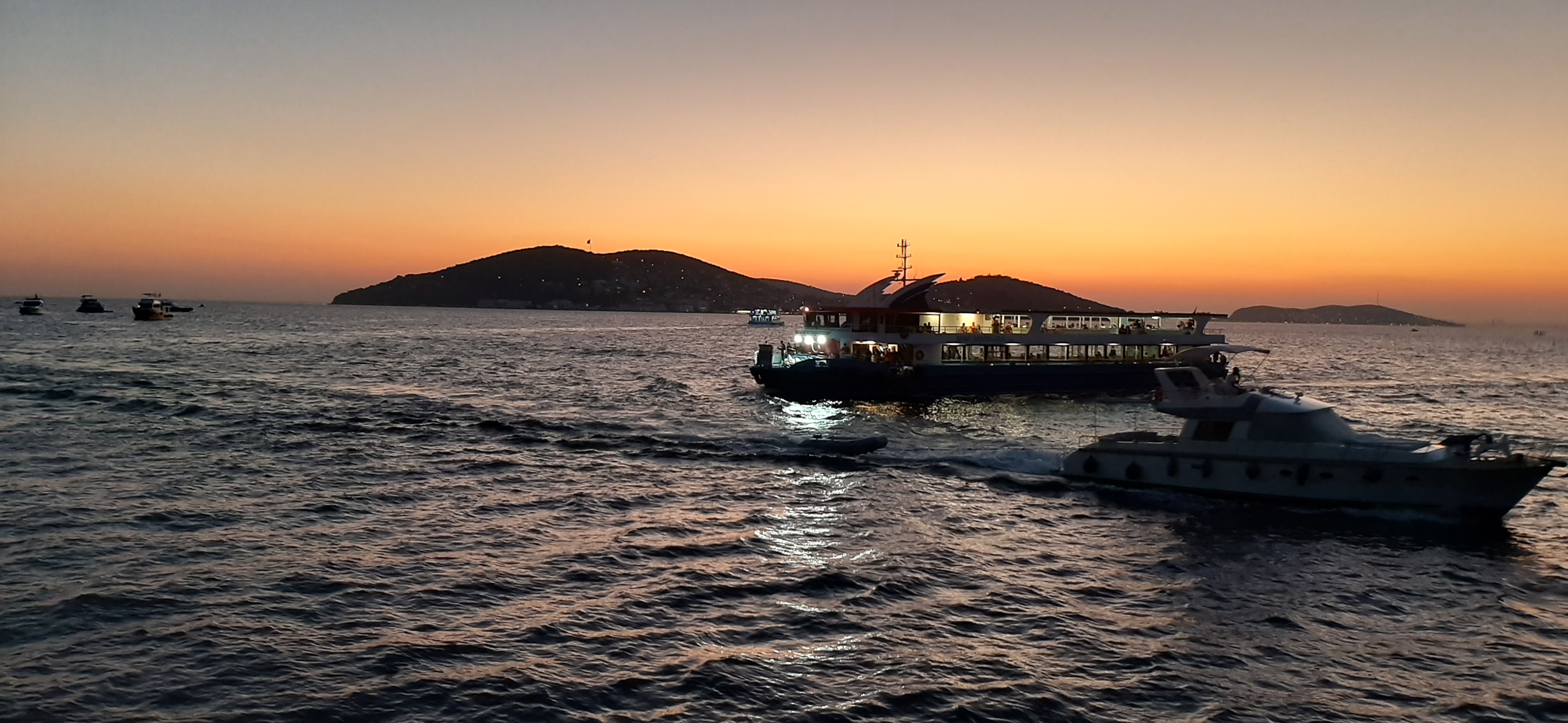 Norėdami plaukimą laivu suderinti su tolimesnių vietų aplankymu, rinkitės laivus, kurie plaukia į salas (Adalar) ir išlipę didžiausioje Büyükada gerą pusdienį galėsite skirti jos apėjimui ar apvažiavimui. Čia pasinaudojant Stambulo miesto kortele elektriniu autobusiuku galima pasiekti kalno papėdę, ant kurio stovi šv. Jurgio bažnyčia. Jei tikite burtais, tai galėsite išbandyti net du. Papėdėje esančioje parduotuvėlėje nusipirkite špūlę siūlų, kurią lipant į kalną ir šiukštu neištariant nė žodžio išvyniokite. Sakoma, kad pildosi norai. Jei to mažai, tai toje pačioje parduotuvėlėje nusipirkite nedidelius varpelius, juos įsisekite ir lipkite į kalną. Žinoma reikia galvoti apie norą. Kai jis išsipildo, varpelį reikia grąžinti (ne parduotuvėlei aišku, bet palikti saloje). Toje pačioje parduotuvėleje galima įsigyti ir įvairių spalvų žvakių, kurias reiktų uždegti ant kalno esančioje bažnyčioje. Tik pasidomėkite ar bažnyčia bus atidaryta. Ji būna uždaroma ganėtinai anksti, tačiau vardan norų galima bandyti uždegti žvakes ir kitur. Aš uždegiau metalinėje bulgarų cerkvėje. Saloje galima išsinuomoti ir dviračius, kuriais apvažiuotumėte visą salą. Čia yra begalės kavinių ir restoranų ir kai kuriuose jų kainos gali gerokai krimstelti piniginę. Į salas laivo kaina sekmadieniais gali ir nebūti penki kurušai. Vis tik populiari ir stambuliečių tarpe vieta. Jei nenorėsite aplėkti salos labai greitai, tai galite netgi nukakti iki vietos paplūdimių, iki kurių dažniausiai nemokamai plukdo specialūs laivai. Reikės sumokėti tik už paplūdimį. Norintiems šiek tiek prabangos vakare galiu rekomenduoti išsinuomoti valandai ar dviems privatų laivą, kuris plukdytų Bosforo sąsiauriu. Dabar grupei iki dvidešimties asmenų kaina buvo šeši šimtai lirų valandai. Pigiau grybo. Romantika arba prabanga už nedaug pinigų. Tiems, kurių nedomina prabanga, bet norėtų pasižvalgyti į Stambulą nuo vandens drąsiai rekomenduoju Bosforo kruizus. Jų yra keletas (trumpieji iki antrojo tilto, su salomis ir iki jūros) ir gali trukti nuo valandos iki keleto valandų.