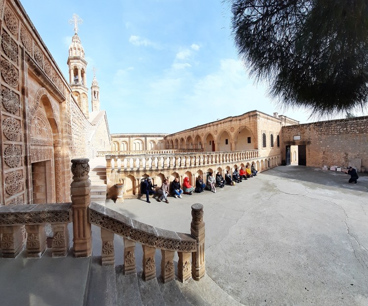 Kitą dieną pradėjome anksti pusryčiais viešbutyje ir turėjome gerą pusdienį apžiūrėti svarbiausias Urfos vietas. Senasis turgus (prieskoniai, saldumynai, juvelyrika, šalikai, riešutai), kuriame atsigėrėme rytinės kavos dar visiškai tuščiame hane. Toliau patraukėme Abraomo olos ir žuvų ežero link. Ryte tik kur ne kur buvo žmonių, todėl viskas atrodė neįprastai ramu, nes anksčiau, kad pakliūti į uolą, reikdavo palaukti eilėje. Nepaisant to, kad žmonių šiuo metu nėra daug, žuvys toli gražu neatrodė mirštančios iš bado – čia jos šeriamos nuo ryto iki vakaro ir įmetant maisto vis dar kovoja už kiekvieną kasnį. Atidavę duoklę žuvims nuėjome iki Šanliurfos muziejų. Viename jų – istoriniame yra ir Giobeklitepe šventyklos kopija, kitas – mozaikų muziejus. Atėjo laikas važiuoti ir tikrosios Giobeklitepe šventyklos link, kuri yra nutolusi nuo miesto tik per dvidešimt kilometrų. Giobeklitepe – daugiau nei dešimt tūkstančių metų skaičiuojanti – seniausia pasaulyje šventykla, šiuo metu neatrodanti labai mistiškai, tačiau reikia vertinti istorinę jos svarbą. Šį kartą mūsų maršrute nebuvo senųjų Haran namų Sirijos pasienyje ir važiavome į Mardiną, į kurį atvykus neturėjome daug laiko dėl komendanto valandos, todėl sparčiu žingsniu patraukėme iki pasistiprinimo vietos – restorano ir negaišdami daug laiko nuėjome iki vienos iš vyno parduotuvių. Čia susipina daug istorijos, religijos ir kultūros – na ne pačioje vyno parduotuvėje, tačiau….. Čia randame ilgus metus Mor Gabriel (šv. Gabrieliaus) vienuolyne gidu dirbusį Koryakos. Keistas vardas Turkijoje? Jis nėra turkas ir ne musulmonas, o sirų ortodoksų krikščionis. Sirų krikščionys gamina vyną, kurį parduoda specialiose vyno parduotuvėse Mardino mieste. restoranuose ir kavinėse alkoholio praktiškai nėra. Čia mes ne tik nusiperkame vyno, bet ir prakalbame apie valandą laiko su Kuryakos apie sirus, gyvenančius čia ne vieną tūkstantmetį ir vis dar kalbančius aramėjų kalba. Sirų krikščionių čia yra ne viena kryptis: ortodoksai, katalikai, anglikonai, maronitai, malabarai, protestantai, jakobitai ir kt. Bekalbant dar labiau sustiprėjo noras kitą dieną aplankyti šv. Gabrieliaus vienuolyną.