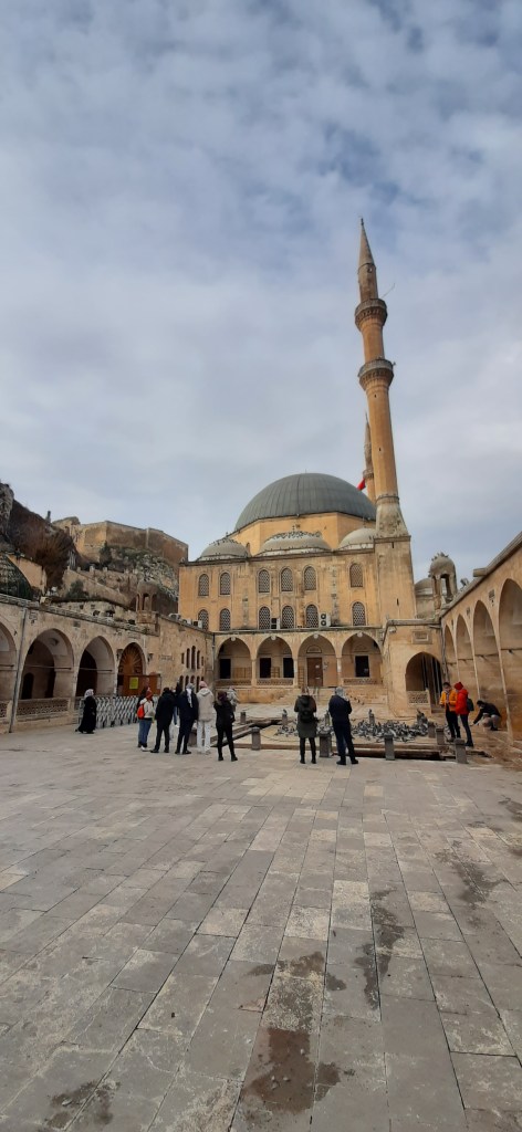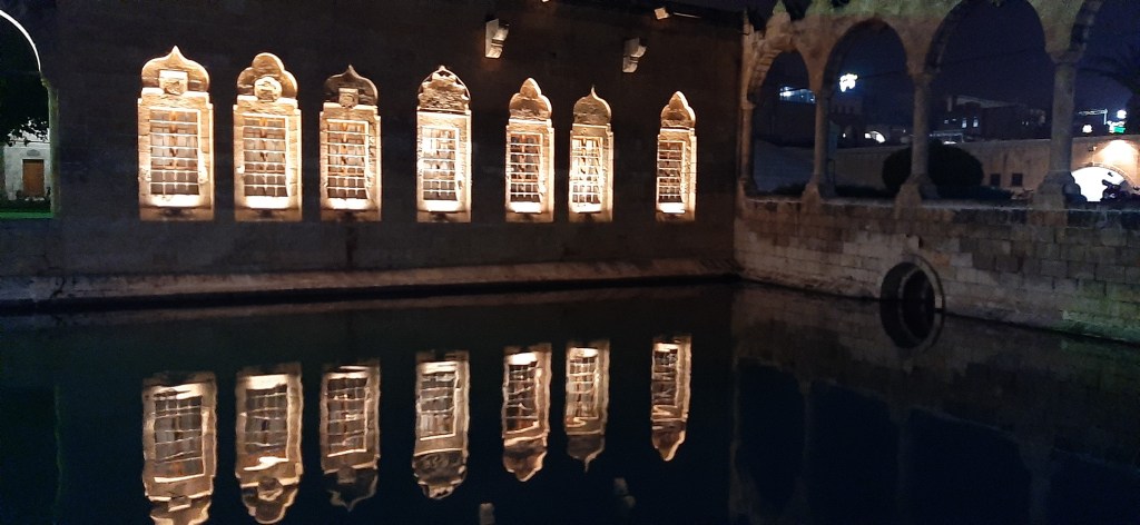 Judėjome Šanliurfos link. Koks Urfos lankymas jei neragaujamos kepenys, tai ta proga nusėdome viename iš kepenų restoranėlių. Jau buvo užsidarymo prieš komendanto valandą laikas ir aplinkui esančio turgaus parduotuvėlės buvo užvėrę duris – mes taip pat buvome paskutinieji, bet ne prasčiausi restoranėlio klientai. Kiek pasivaikščiojome prie žuvų ežero (mečetės kiemo dalis) ir patraukėme į viešbutį. Atvykus į Urfą ir norint pajusti daugiau istorijos bei būti centre, geriausia rinktis viešbučius, kurie įrengti senuosiuose namuose su vidiniu kiemu. Neretai jie būna sukurti iš keleto atskirų namų, kambarių langai dažnai išeina į vidinio kiemo pusę, viduje įrengti fontanėliai.