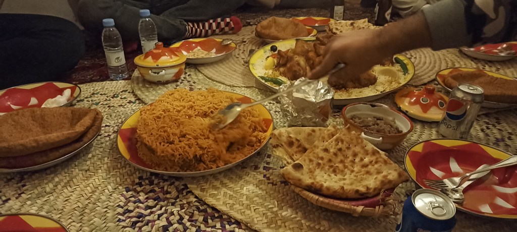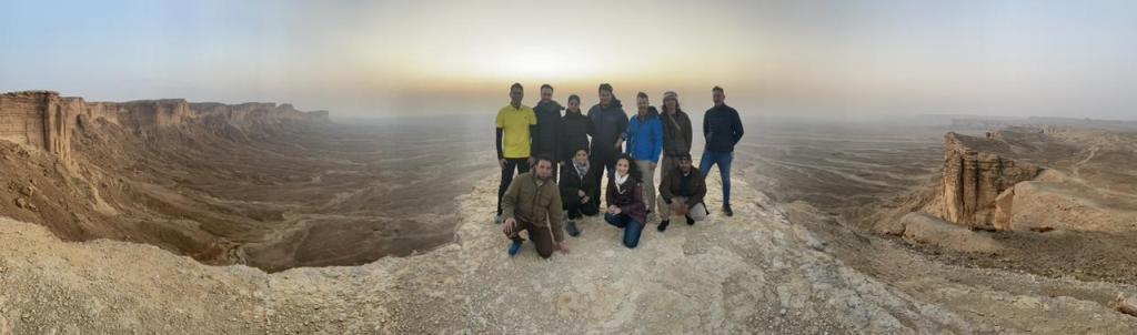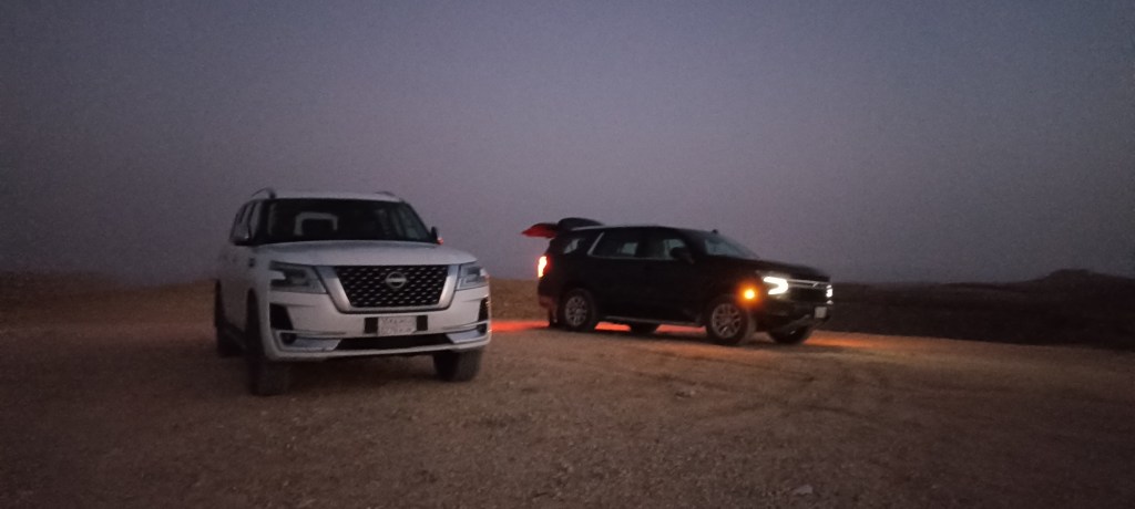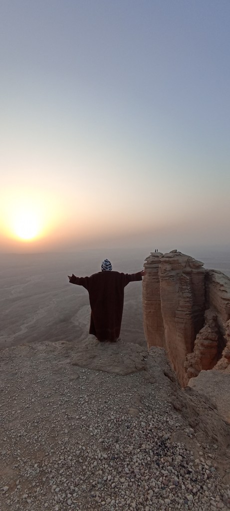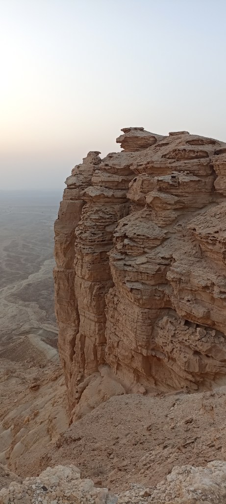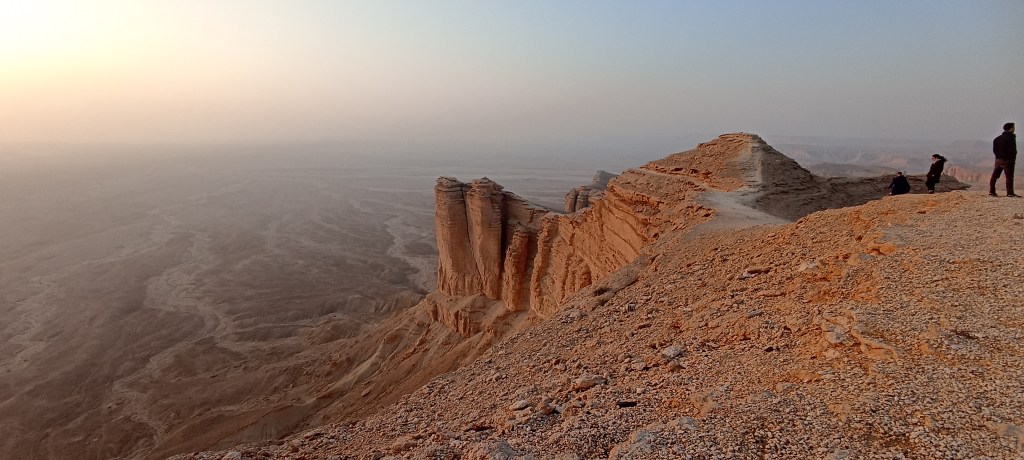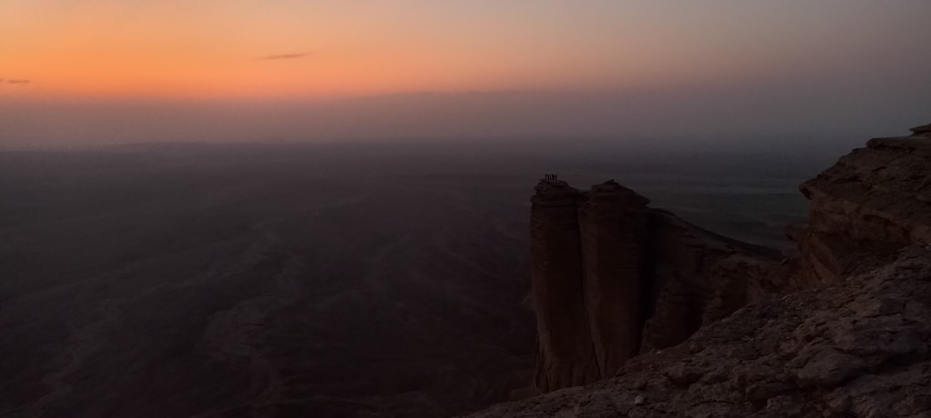 Lyjant lietui važiavome miestu, buvo matyti naujieji ir vis dar statomi dangoraižiai,daugybė prekybos centrų kavinių, gyvenamųjų namų, iš visų pusių matėsi sparčiai besikeičiančio ir modernėjančio miesto vaizdai. Išvažiavus iš Rijado lietus kiek aprimo, o po kurio laiko ir visai praėjo. Buvo kiek pankiukę, tačiau ant kelio nesimatė, kad būtų čia lyta. Prieš išvažiuojant iš pagrindinio kelio į dykumą, stabtelėjome degalinėje. Čia norėjau nusipirkti kokį užkandį, nes šiandien dar taip ir neradau progos pavalgyti. Na kokia gali būti parduotuvė dykumoje ir gana atokioje vietoje. Atrodytų, kad trys snikersai, kola ir vanduo su cigaretėmis, tačiau gerokai klydau. Be abejo gaivieji ir visokie burbuliniai gėrimai, pilna visokiausių užkandžių, riešutų, šiaip stovyklavimo reikmenų, higienos priemonių ir t.t. Normalus nedidelis marketukas. Buvau prisiskaitęs ir prisiklausęs čia keliavusių, kad sudėtinga atsiskaityti kortele ir reikia būti pasiruošusiems, ir t.t. Na nežinau kaip jiems nepasisekė, bet net mažiausiose parduotuvėse iki šio momento niekur nebuvo problemos atsiskaityti kortele. Jokių braukymų ar slaptažodžių įvedinėjimu, o paprasčiausiu bekontakčiu būdu. Arba akmuo į tokių rašytojų daržą, arba jiems nepasisekė. Praktiškai nuo šio momento ryšio su pasauliu beveik neturėjome, greitai išsukome iš asfaltuoto kelio ir jau važiavome arba lėkėme smėlynais. Jausmas taip lekiant puikus, bet bendrakeleivis iš JAV pastebėjo ir suprato iš kur specifinės žymės ant durelių iš vidaus ir sėdynių – jas paliko keleiviai, nagais įsikirtę į sėdynes ar dureles. Smagiai su vėjeliu judėjome pasaulio krašto link, nes tikslas buvo ten palydėti saulę. Pakeliui buvo matyti keletas lengvųjų automobilių, kuriais turistai savarankiškai vyksta iki tikslo. Mano manymu pasirinkimas dvigubai neteisingas. Visų pirma reikėtų važiuoti visureigiu, nes normalaus kelio nėra ir net visureigio dugnu būna dažnai pasiekiami akmenys. Kita priežastis yra ta, kad prarandama safario pojūčio galimybė. Taupyti reikėtų protingai, o ne iš principo. Saulei jau beveik visai paiekus horizontą atvykome į pasaulio kraštą. Prieš daugybę milijonų metų tai buvo jūros dugnas ir judant žemės plokštėms kilo kalnai, radosi slėniai. Taip pakilo kelių šimtų kilometrų ilgio skardis. Atvykus iki čia, kelio žemyn nėra ir taip atsirado pavadinimas Pasaulio kraštas. Palikę visureigius ant skardžio dar turėjome paėjėti kelis šimtus metrų iki išsikišimo, kuris tarsi dar labiau išsikiša nuo paties skardžio. Norisi dairytis į visas puses, visur fotografuoti ar filmuoti, bet reikia žiūrėti ir po kojomis, kad nenugarmėti žemyn. Be to buvo gana smarkūs vėjo gūsiai, tai arti krašto šiukštu nereikia. Įspūdis čia įspūdingas 🙂 nes dalis horizonto skendėjo migloje, taičiau tiek kairėje, tiek dešinėje pusėje buvo galima matyti visą pasaulio kraštą. Žmonių buvo nedaug. Gal dalį išgąsdino lietus Rijade, bet dar ir geriau, nes šis pasaulio pakraštys buvo tik mūsų. Nusileidus saulei grįžome į visureigius ir važiavome olos link. Atvykus prie olos ir pamačius įėjimą į ją tapo aišku, kad čia dykumoje tamsoje vaikščioti pasišvilpaujant ir nepasišvietus yra pavojinga. Na nebent būtų mėnulio pilnatis ir viskas aplinkui puikiai matytųsi. Įrengtomis kopėčiomis nusileidome į neįprastai šiltą olą. Iš pradžių ji pasirodė pakankamai nedidelė, tačiau pradėjome eiti siauru ir žemu tuneliu gilyn. Matėsi įvairūs kristalai ar druskos, visur aplinkui skraidė šikšnosparniai. Kažkokio mistiško filmo ar net siaubiako dalis. Tik nebuvo jokio klykavimų, o išjungus žibintuvėlius galima buvo girdėti ir justi kaip šikšnosparniai lakioja aplink. Keliaudami visureigiais toliau prigavome dykumos ežį, kuris taip ir liko nelabai supratęs ko mes iš jo norėjome. Laikas pralėkė labai greitai, o dar turėjome pavakarieniauti. Pasiboviję prie ežio pamatėme, kad mūsų visureigio ratas liko be oro. Nelabai linksma vidury dykumos kai jau tamsu. Ir vėl pagalvojau apie tuos keliautojus lengvuoju automobiliu, kurie ant prasto kelio keitė ratą. Vairuotojas laikinai sutvarkė ratą, kad galėtume nuvykti iki artimiausios degalinės (tos pačios, kurioje sustojome prieš išvažiuojant iš normalaus kelio) ir joje sutvarkyti ratą. Tamsoje važiuojant greitkeliu į Rijadą galvojau mašiną prarysiu bežiovaudamas, nes jautėsi ir nuovargis, ir daug įspūdžių, o dar laukė vakarienė. Šiandien vakarieniavome viename iš tradicinių restoranų, kuris iš išorės atrodo kaip nedidelė pilaitė, o viduje yra keletas kiemelių su daugybe durų ar atskirų vietų prisėsti su užtraukiamomis užuolaidomis. Taip yra daugiau privatumo. Mes vakarieniavome viename iš kambarių. Puikus maistas iš tiesų. Pasidalinę įspūdžiais ir nuotraukomis visi patraukėme savais keliais. Buvo įdomu pabendrauti ne tik su atvykusiais į šią šalį, bet ir su čia vietoje gyvenančiais ekskursijos dalyvais. Gerokai po vidurnakčio jau drybsojau lovoje. Kitą dieną laukia naujas nuotykis Rijade.