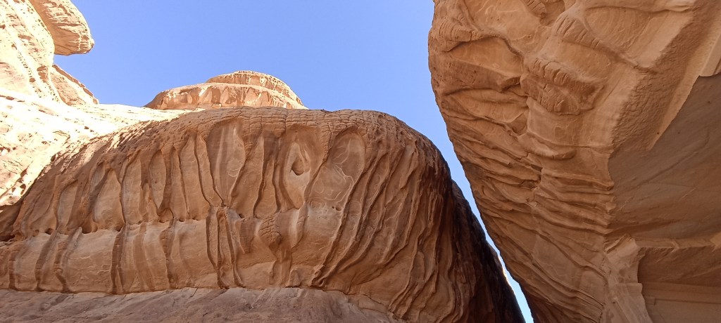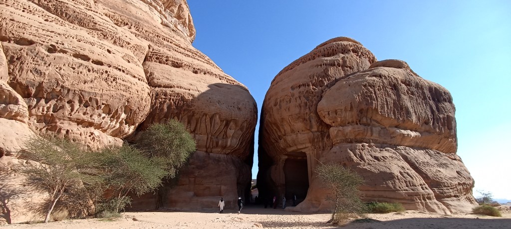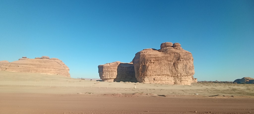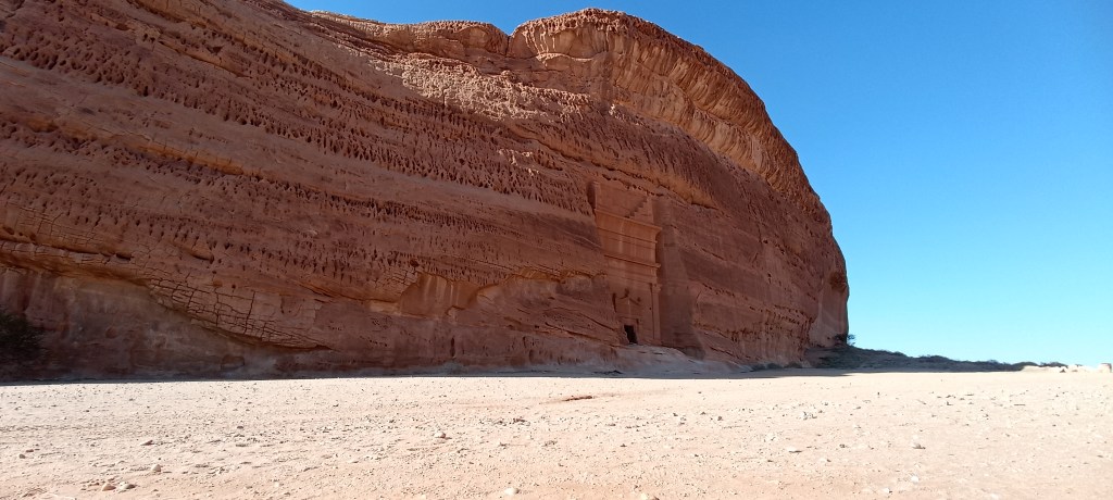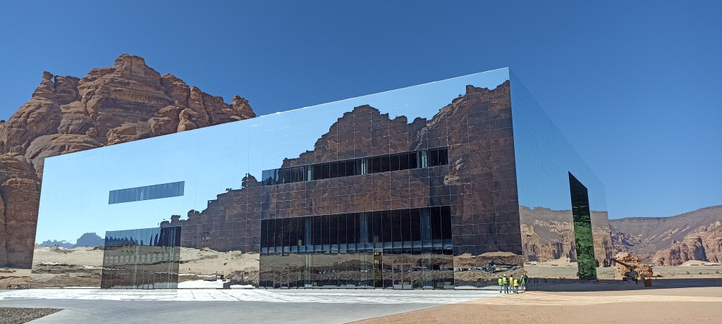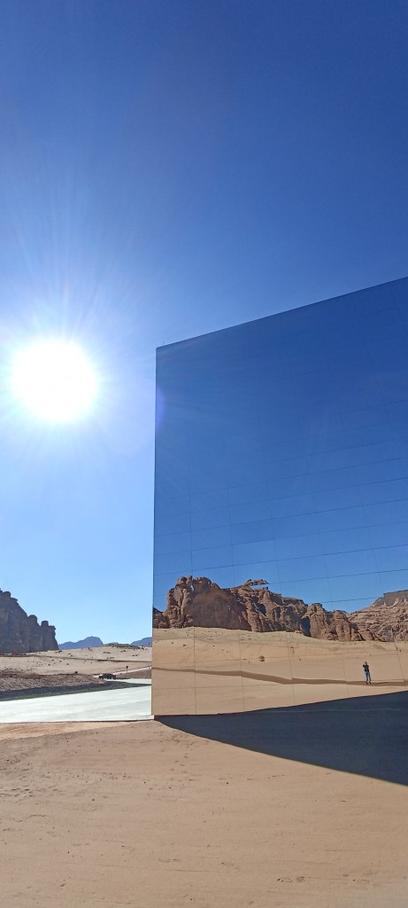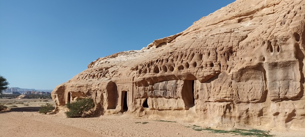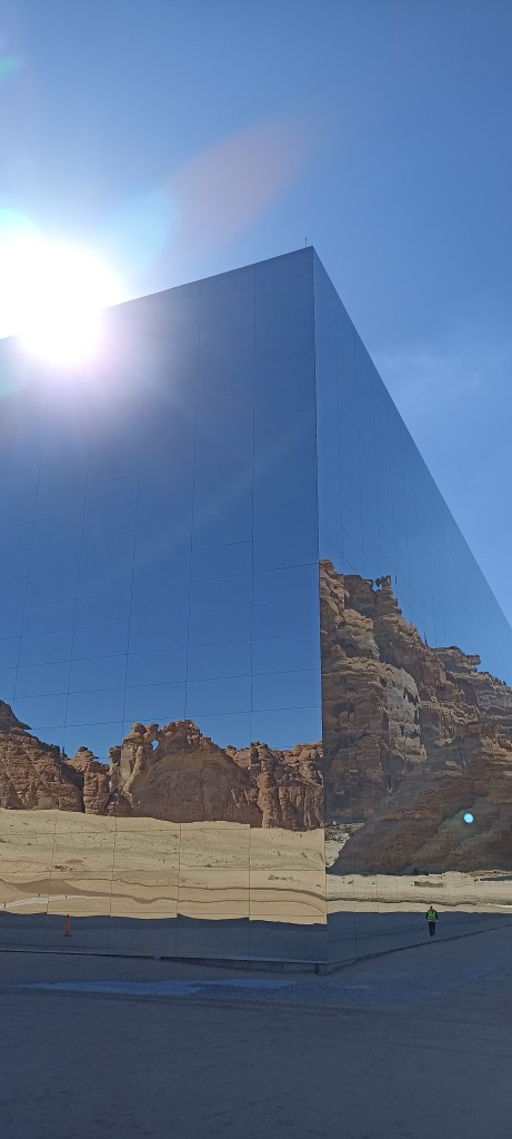 ٱلْعُلَا (AlUla) yra Medinos provincijoje esantis oazės miestas, Saudo Arabijos šiaurės vakaruose. Atsivėrus šaliai, šioje vietoje galima rasti daug įdomių dalykų. Vieni jų skirti prabangos mėgėjams, kiti – pažinimo mėgėjams. Kadangi pačioje AlUloje reikiamam periodui neradau laisvų viešbučių,o ir jiems esant laisviems, kainos gali netgi labai pasikandžioti, pasirinkau Tabuko miestą. Iš Rijado lėktuvas pakilo kiek vėluodamas, nes buvo tirštas rūkas, o leidžiantis Tabuko oro uoste oras buvo puikus. Nelabai didelis, tačiau šiuolaikiškai įrengtas oro uostas buvo apytuštis, tad pagriebęs lagaminą gana greitai atsidūriau lauke. Tabuke Uber programėlė neveikia ir šį kartą reikėjo pasinaudoti Careem paslaugomis. Pasisekė, kad automobilis atvyko greitai ir po keliolikos minučių jau buvau viešbutyje. Miestas yra atokaus šalies rajono, tačiau yra švarus, plačios gatvės. Viešbutis apskritai nustebino šiuolaikiškumu, o visas personalas puikiai kalba angliškai. Šiandien planavau tik padirbti ir pailsėti po visų prieš tai buvusių dienų, todėl tiesiog nuėjau iki netoliese esančio prekybos centro pavalgyti. Viešbutyje gavau laikiną kambarį kol sutvarkys mano, nes atvykau ryte ir kambarys buvo neparuoštas, todėl galėjau pailsėti. Kitą dieną laukė naujas nuotykis. Anksti ryte išvykau į AlUlą. Iš tiesų tai miestelio pavadinimas, kuriuo vadinama nemaža istorinio paveldo kaupina teritorija. Turėjau pasižymėjęs kelias vietas, kurias būtina aplankyti, bet juk ne pagal planą būna dažniausiai įdomiau. Pasirodo bilietus reikia užsisakyti iš anksčiau, o aš naiviai tikėjausi juos gauti vietoje, bet visuomet praverčia pažintys, kurios gelbėjo ir šiandien. Mane vežantis vairuotojas po keleto skambučių kur reikia, į telefoną gavo du bilietus – vienas veidrodinio pastato lankymui, o kitas poros valandų turui. Važiuojant kraštovaizdis pamažu pradėjo keistis ir rastis vis daugiau Jordaniją primenančių vaizdų. Ir iš tiesų Jordanijoje esančią Petrą primenančių vaizdų čia apstu. Visoje šioje didžiulėje teritorijoje daugiau nei prieš du tūkstančius metų viešpatavo nabatėjai. Jie buvo įsikūrę patogioje prekybos kelio vietoje, be to po savimi turėjo nemažai gruntinio vandens, kurį naudojo. Didelę kelio atkarpą šalimais buvo galima matyti buvusio piligrimų geležinkelio likučius. Šis maršrutas, vadinamas Hedžaz, daugiau nei prieš šimtą metų, jungė Damaską ir Mediną. Buvo matyti keletas buvusių stočių, kurios yra restauruojamos. Kiek vėliau vis daugiau matėsi sodų ir palmių giraičių. Vešli žaluma buvo priešprieša uolienai ir smėliui. Keitėsi ir uolienos spalva – buvusi rusvai pilkšva ar juoda keitėsi į rausvą, rudą ir geltoną. Mano pirmasis sustojimas buvo prie veidrodinio pastato, kuris vadinamas Maraja (arab. veidrodis arba atspindys). Tai į rekordų knygą įrašytas pastatas kaip didžiausias veidrodinis statinys. Jame yra koncertų salė ir restoranas. Įspūdingai atrodantis statinys yra viename iš slėnių. Buvo matyti tvarkoma automobilių aikštelė, taip pat valomi veidrožiai ir tvarkome aplinka. Po poros dienų čia atvyksta arabų pasaulio pop žvaigždė, o be to vakarais duris atveria prabangus restoranas ant stogo. Statinys atrodo tikrai įspūdingai, kai matosi ne tik smėlio, bet ir uolų bei dangaus atspindžiai. Bilietą turui po apylinkes turėjau antrai valandai popiet, todėl dar buvo laiko aplankyti keletą kitų vietų. Pirmiausia nuvažiavome iki dramblio kalno Jabal AlFil (žebel al fil). Pati dramblio teritorija buvo laikinai uždaryta, tačiau viskas puikiai matėsi kiek iš tolėliau ir galėjau laisvai fotografuoti neprieidamas artyn. AlUla senamiesčio didžioji dalis taip yra buvo uždaryta tyrinėjimams ir renovacijai. Jį ruošiamasi paversti dideliu muziejumi po atviru dangumi. Galiausiai atvykau į Winter Park teritoriją. Čia yra visų turų pradžia, kur sėdama į specialius autobusus ir važiuojama pasirinktu mašrutu. Šiandieninis mano turas – dviejų valandų Hedžra. Iš pradinės stotelės autobusas nuveža iki lankytojų centro, iš čia kitas autobusas važiuoja pirmojo lankytino objekto link. Autobusai kursuoja kas dvidežimt minučių, todėl išlipus iš vieno ir apžiūrėjus objektą bei išklausius gido pasakojimą, lipama į kitą atvažiavusį auobusą. Galima rinktis tą patį turą visureigiais ar arklių traukiamais vežimais. Pasirinkę šį turą išvysite nabatėjų kapavietes, kurios yra kaip Petroje, Jordanijoje. Šiuo metu yra šeši sustojimai, tačiau buvo matyti dar bent keletas papildomai įrengiamų. Visur yra švaru ir tvarkinga, į vidų užeiti neleidžiama, tačiau fotografuoti galima į valias. Šiame ture užtrukau kiek ilgiau nei dvi valandas, nes norėjosi apeiti kuo daugiau. Galiausiai grįžęs į pradinį tašką, sėdau į automobilį ir pajudėjau Tabuko link. Laukė beveik trijų valandų kelionė trumpesniais keliais.