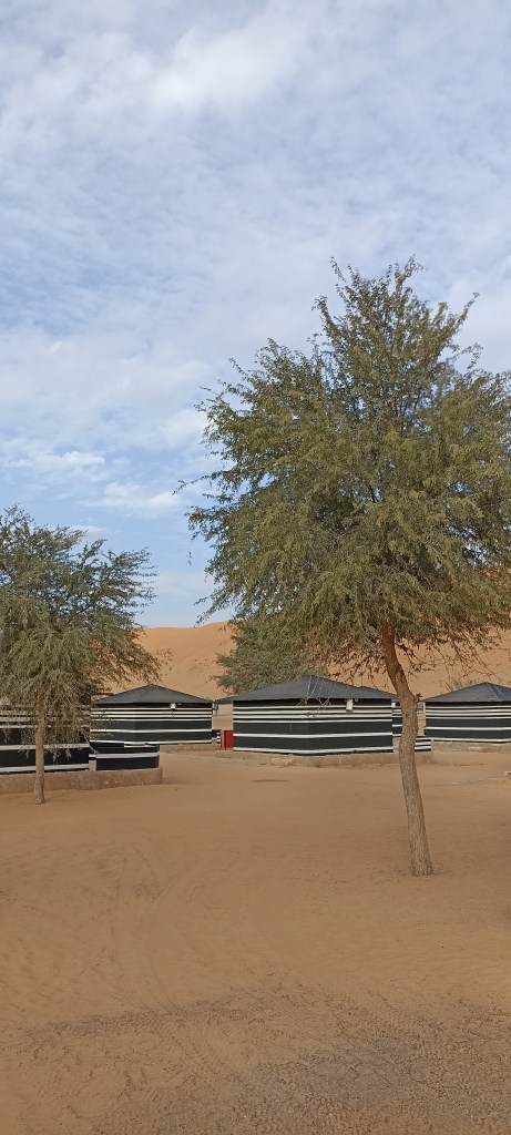 Rytas išaušo be lietaus, bet debesuotas, matėsi ir gana žemai besiblaškančių debesų. Vis tik kalnas trijų kilometrų aukščio. Sprendžiant į kurią šalies pusę man dar nuvažiuoti, tuo pačiu reikėjo susišaudyti pakeleivingą mašiną, kad nusileisti nuo kalno. Iki čia tikrai nė vienas taksi nevažiuos. Štai čia vėl pasimatė Omanui būdingas ne tik svetingumas, bet ir paslaugumas, pagalba. Netrukus su omaniečiais leidausi nuo kalno, nes jie kaip tyčia važiavo į Nizwa miestelį, kuriame planavau jau sėsti į taksi. Šiandienos kelionės tikslas – dykuma, smėlynai, kopos ir nakvynė stovykloje. Leidžiantis nuo kalno paaiškėjo, kad mano pavežėjai turi planų iki važiuojant į Nizwa ir viena to plano dalis buvo Bahla fortas – tas, į kurį nenuvažiavau vakar dėl lietaus, o šiandien čia jau saulė žeme ridinėjosi kaip niekur nieko. Bala nematė, kad nevažiuos iš karto kur planavau, tačiau važiuosiu ten, kur reikėjo. Bahlos fortas dar didesnis, nei Maskato ir Nizwa fortai. Didingai jis atrodo ir iš išorės, ir viduje. Įėjimo bilietas kainavo tris rialus. Galvojau apibėgsiu greitai, bet tas greitai buvo apie valandą laiko. Čia tiek kambarių, tiek laiptų, tiek visokiausių praėjimų, bokštų ir užlipimų, o užsikabarojus į viršų siaurais laiptais, atsiveria visos apylinkės. Ir šiame forte galima laipioti stogais. Nusileidus žemyn išėjimo link, buvo pats laikas pradėti nusirenginėt, nes kalno viršuje buvo tik apie vienuolika laipsnių šilumos, o Bahloje visi dvidešimt vienas, švietė saulė ir nebuvo jokio vėjo. Po kurio laiko jau lėkiau dykumos link. Pakeliui sutariau su stovyklos menedžeriu, kad atvažiuos mašina manęs susirinkti nuo greitkelio, kad galėčiau paleisti taksi, o be to išsukus iš greitkelio jau prasideda smėlio ir akmenų kelias, kuris paprastam automobiliui būtų tiesiog neįveikiamas. Lėkėme su vėjeliu, kol atvykome iki stovyklos dykumoje. Viena jos dalis kaip beduinų palapinės – vilnonės sienos, dalis namukų statyta iš šiaudų ir rišamosios medžiagos mišinio ir dalis – mediniai namukai. Mano buvo medinis namukas stovyklos pakraštyje, iki kurio nuvežė smėlyno golfo automobiliu ar panašiu hibridu. Atstumas nėra didelis, bet malonu kai pristato iki laiptų. Terasoje du gultai, kambarys erdvus su milžiniška lova, sofa ir vonios kambariu, o vaizdas pro langą į dykumą. Turėjau šiek laiko pabūti kambaryje, o vėliau manęs laukė pasivažinėjimas smėlio kopomis ir saulėlydis. Vėjas dar labiau stūgavo ir kopos buvo pasišiaušę. Asmenukės tai tokios ir buvo, kad vaipymasis prieš saulę persimaišė su smėlio ryjimu ir bandymu išmirksėti iš akių. Vis galvojau prasidės smėlio audra ar susiturės, nes beliktų sėdėti kambaryje ir vis tiek ryti smėlį. Vairuotojas pasitaikė iš smagiųjų: laidomės nuo stačių šlaitų, čiuožėme šlatais ir lėkėme ant kopų. Buvau labai jau to pasiilgęs – lakstymo po kopas. Nusileidus saulei grįžau į stovyklą. Smėlis byrėjo iš visur, iš kur tik įmanoma pagalvoti, kad jo gali būti. Krapštyk nekrapštęs, kai vėjas jį ir toliau neša. Po kiek laiko prasidėjo vakarienė: salotos, šalti užkandžiai, keliais būdais paruošta vištiena, jautiena ir kupranugario mėsa, troškiniai. Po vakarienės dalis pajudėjo rūkyti kaljano, kiti į vakarinius safarius ir žvaigždžių stebėjimą, danguje ryškiai švietė gulintis mėnulis ir netoli jo įsitaisiusi ryški žvaigždė. Vėjas ir toliau stūgavo. Kaip gerai kambaryje, kai už lango šėlsta vėjas. Rytoj jau reikės grįžti į Maskatą. Besvajodamas prisiminiau dienos juoką. Nepasivarginau įspėti viešbučio Maskate, kad kelioms dienoms išvažiuoju, tai šiandien jau sunerimo, kad manęs porą dienų nematė ir paklausė ar man viskas gerai. Išsiunčiau savo žavingą gyvo ir sveiko nuotrauką saulėlydžio dykumoje metu, kaip įrodymą, kad rašau aš. Palinkėjo sėkmės keliaujant. Toks tas Omanas – svetingas, rūpestingas, malonus, švarus.