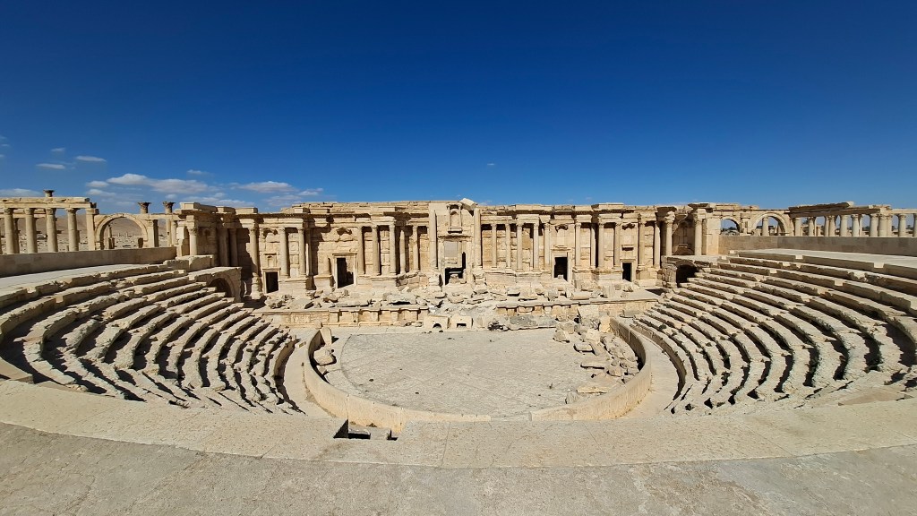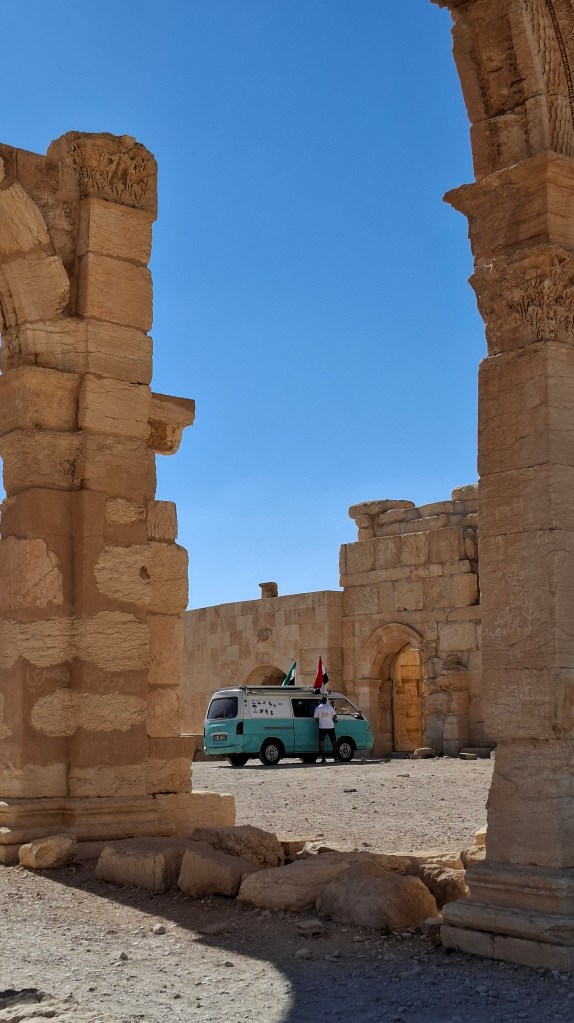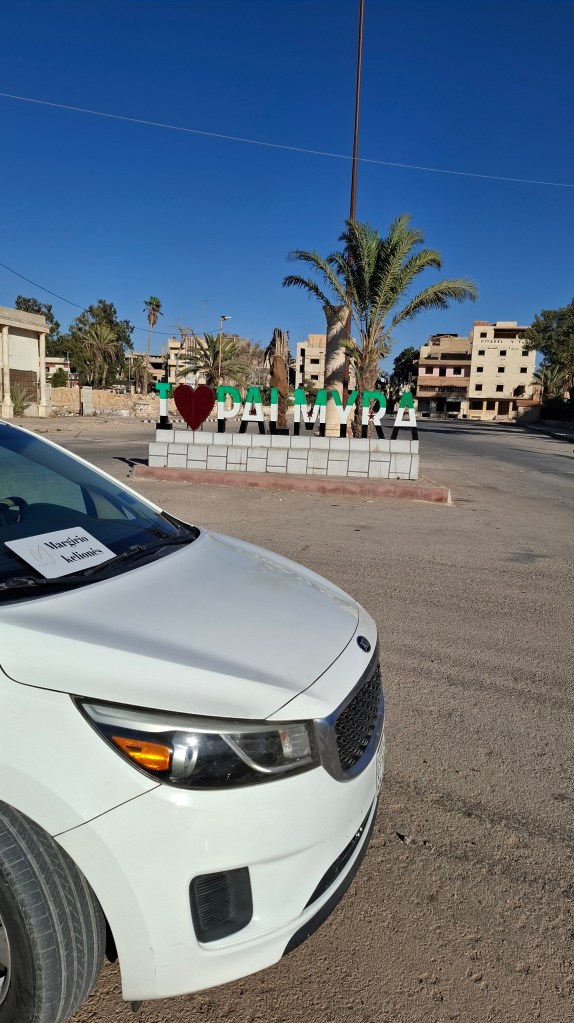 Pusryčiaujant buvo girdėti netoliese esančių bažnyčių varpų skambesys, mokyklos pildėsi vaikų klykavimais. Į Palmyrą vedė kelias dykuma. Pakeliui buvo daugybė patikros postų, kuriuos pravažiavome beveik nesustodami. Dar visai neseniai, anot gido, šiuose postuose užtrukdavo važiuodami daug ilgiau, nes kiekvienas ginkluotas asmuo jausdavo savo galią ir viršenybę. Palmyros antikinis miestas prieš kurį laiką buvo naikintas įvairaus plauko kovotojų, kuriems kliuvo viskas, įskaitant ir šalies kultūrinį palikimą. Kai kas bandoma atstatyti, tačiau ne tik pats Palmyros antikinis miestas buvo naikintas, bet ir aplinkui esantys gyvenamieji namai. Neliko buvusių viešbučių, parduotuvių, kavinių, restoranų – vien vaiduokliški griuvėsiai. Pasivaikščiojome Palmyros mieste kur galima, nes dalyje vis dar neišvalytos minos ir vėliau pietavome neseniai grįžusių į Siriją žmonių restorane, kuris įrengtas beduinų stiliumi. Šiai nakčiai išvykome į viešbutį viename iš kaimelių, netoli Krak des Chevaliers.