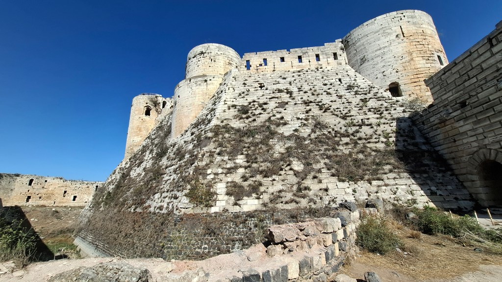 Krak des Chevaliers – Viduramžių kryžiuočių pilis, pastatyta ant kalno ir ilgą laiką saugojusi jos gyventojus nuo priešų. Šiuo metu restauruojama, bet atvira lankytojams. Nuo pilies kuorų matyti ne tik Sirija, bet ir Libanas. Važiuojant pro kaimelius kalnuose, matėsi daug bažnyčių ir vienuolynų. Šioje Sirijos dalyje didžioji dalis gyventojų – krikščionys. Išlandžioję pačius atokiausius kampelius bokštuose, patraukėme Alepo miesto link, kurį radome smarkiai apgriautą. Pilietinio karo pasekmės matyti kiekviename žingsnyje. Senasis miesto turgus dalinai jau sutvarkytas, tačiau kiek pasukus į nuošalesnes gatveles, vaizdas labai liūdnas. Visą dieną turėjome laiko vaikščioti ne tik istoriniame turguje, bet taip pat užėjome į vieną seniausių muilo fabrikų, kur iki šiol didžioji gamybos dalis atliekama rankomis. vaikštant miesto gatvelėmis kaip neužkliūti už kvepalų parduotuvių, kuriose galima įsigyti ne tik aliejinius, bet ir maišytus su alkoholiu – purškiamus. Kainos tiesiog juokingos. Lankanties citadelėje ir prie jos, galima matyti daug ginkluotų pareigūnų. Atrodytų, kad jie tikrai atsisakys drauge nusifotografuoti, bet ne tik, kad sutiko, bet dar ir instagraminiais sekimais apsikeitėme, nes norėjo pamatyti koks bus rezultatas. Nors buvo spalis, bet oro temperatūra sukiojosi apie trisdešimt laipsnių šilumos, todėl kartkartėmis prisėsdavome kavinėse kavos, ledų. Galiausiai dienos ekskursiją užbaigėme Alepo traukinių stotyje, kuri šiuo metu yra uždaryta. Šalyje traukinių eismas dar neatkurtas ir vis dar yra sugadintų bėgių, tai stotis tokia pusiau vaiduoklinė.