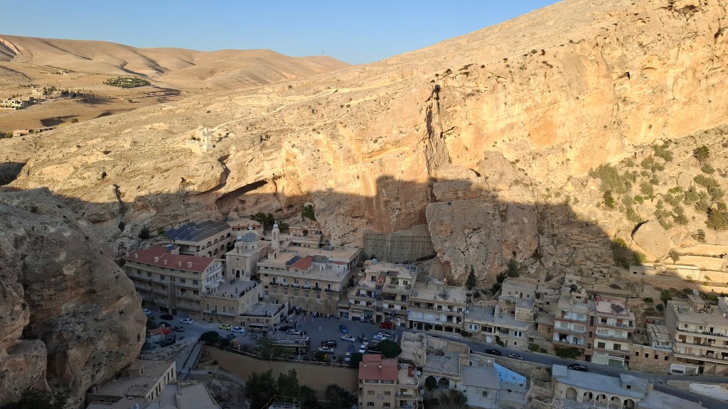 Ryte po pusryčių išvažiavome gana anksti, nes šią dieną žadėjome būti Homso mieste ir po to dar ilgas kelias iki Damasko. Kelyje buvo įprastos patikros, kurios nieko netikrino, nes mūsų transportas turistinis. Homso miestas yra žymus savo ratais, skirtais drėkinimo sistemai. Iš buvusių daugybės ratų, šiuo metu likę tik keletas ir tie patys nesisuka, nes po ilgo sauso periodo, upėje yra nedaug vandens. Šie ratai man priminė matytus Fajumo mieste Egipte, tačiau Homso mieste vandens kėlimo ratai yra žymiai didesni. Atsigėrę kavos restorane, su vaizdu į pažaliavusią upę, patraukėme tolyn. Sirijoje yra ne vienas miestelis, kuriuose didžioji gyventojų dalis yra krikščionys. Vienas tokių – Maaloula. Užkandę šavarmų prie vieno iš vienuolynų, pačiame vienuolyne turėjome progą išgirsti aramėjų kalbą. Čia jau tarpusavy ja nesikalbama ir naudojama tik maldai. Nedideliame vienuolyne gyvena tik vienas vienuolis, čia parduodamas vietoje gaminamas vynas. Šalimais esantis viešbutis, kuris visuomet būdavo pilnas piligrimų, šiuo metu skersai išilgai išvarpytas kulkomis ir suniokotas kitais ginklais. Nuo kalno buvo matyti miestelis, esantis apačioje, į kurį nusileidome šv. Teklės slėniu. Įspūdžius papildė vienoje iš bažnyčių vykusios vestuvės. Šventę ir ceremoniją stebėjo ne tik vestuvininkai ir mes, bet taip pat šalimais esančio šv. Teklės vienuolyno vienuolės, kurios dar ir saldainiais pavaišino. Labai ilgai negalėjome gaišti, nes dar vykome į Sednaya miestelio vienuolyną. Šis yra vienas seniausių ir vienoje iš koplyčių saugantis daug senų ikonų. Mus pasitiko, atvėrė bažnyčios duris ir iki koplyčios su ikonomis palydėjo čia gyvenančios vienuolės. Be jų dar yra keliasdešimt našlaičių. Atėjusios sutemos ir skambantys varpai dar labiau sustiprino įspūdžius. Galiausiai buvusį vieną baisiausių kalėjimų šalyje pravažiavome tamsoje ir judėjome Damasko link. Damaske apsistojome tame pačiame Beit Zafran Hotel De Charme viešbutyje.