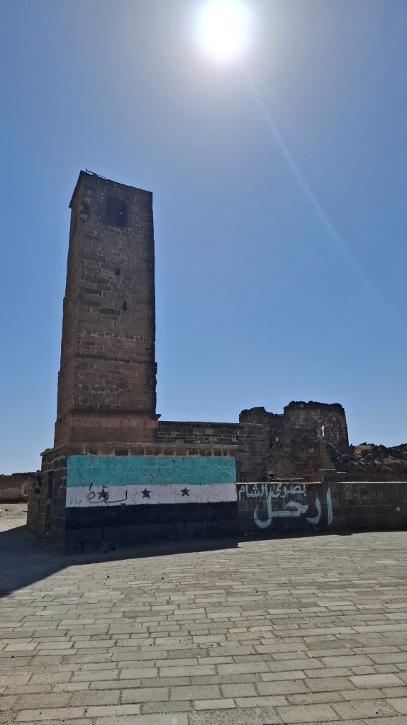 Kitos dienos ankstų rytą važiavome į paskutinį programoje numatytą vietą – Bosra antikinį miestą. Čia geriausiai išlikusi dalis – teatras, kuriame vyksta įvairūs muzikos festivaliai. Šalimais esantys antikinio miesto griuvėsiai buvo panaudoti vėlesnių namų statyboms. Iš buvusių namų, šventyklų ar bažnyčių išardytų sienų paimti akmenys ir pastatyti nauji namai. Dabar čia tokia tarpinė būsena, kai gyventojai buvo iškeldinti ir pamažu bandoma atkurti antikinį miestą, tačiau tai yra labai sudėtinga kai viskas buvo išnešiota ir panaudota nežinia kur. Kai kuriuose pastatuose galima matyti įrašų graikų kalba, maldos namų elementų, šventyklų kolonų. Be mūsų buvo dar dukeliautojai, kurie atvyko iš Danijos, tad niekur nebuvo nei eilių, nei spūsties, o suvenyrų parduotuvėlių pardavėjai atrodė pervargę nuo nieko neveikimo. Grįžome paskutinei nakvynei į Damaską.