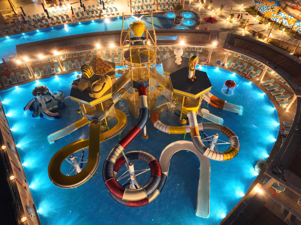 55 pramogos išsidėstę 35 000 kv.m plote. Šis vandens parkas yra vienintelis šildomas Artimuosiuose Rytuose, vienintelis Afrikoje su konvejeriu ir vienintelis, veikiantis beveik visą parą. Nunia vandens parkas gali pasigirti 500 m ilgio tingia šildoma upe. Čia vyksta dainuojančių fontanų šou. Banglenčių sporto mėgėjai ras specialų baseiną, o atsigaivinti galima dviejuose baruose prie baseinų.